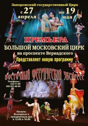 Премьера новой программы Восточный феерический экспресс. Ждем Вас в Запорожском государственном цирке.