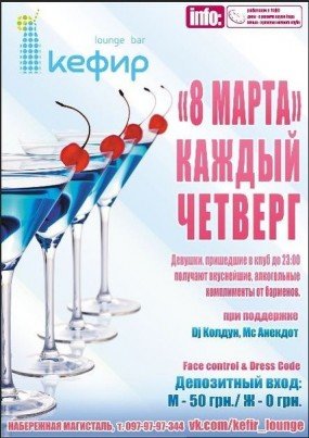 Девушки - это Ваш день! Приходите до 23:00 и получите вкуснейшие алкогольные комплименты от наших барменов взамен только на Вашу улыбку.