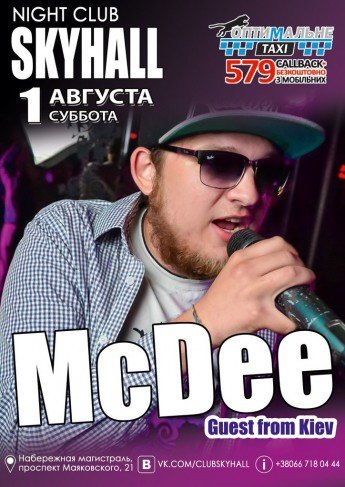 McDee выступит с зажигательной программой с альбомов "Хіп-Хоп Сектор" и "Мой Стиль", а так же с новыми хитами и репертуаром группы "ВУЗВ" не пропусти!