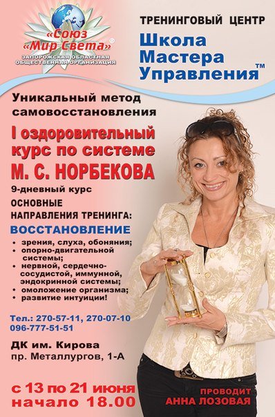 9-дневный Учебно-оздоровительный курс по системе М.С. Норбекова.