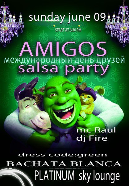- В честь праздника (Международный день друзей) - приведи с собой 2 не танцующих salsa - друга и получи свободный вход на вечеринку!