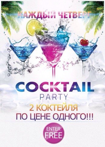 Всю ночь действует акция - 2 коктейля по цене одного, а также розыгрыши коктейлей от барменов.