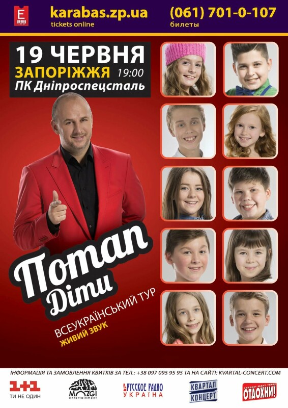 Продюсерский центр Потапа и Ирины Горовой «MOZGI Entertainment» при поддержке телеканала «1+1» представляет всеукраинский тур «Потап. Діти». В масштабном туре участвуют юные исполнители Анна Комякова, Екатерина Манузина, Поллианна Рыжак, Марк Коваленко, Никита Трондин, Михаил Царь, Екатерина Качановская, Иван Лесной, Анастасия Багинская, Руслан Асланов. Шоумен Потап под своим продюсерским крылом объединит молодых артистов и выступит в качестве наставника, идейного вдохновителя и ведущего концертов. Тур охватит десять крупнейших городов Украины.