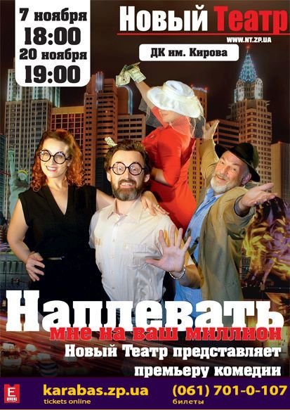 Хотите увидеть, на что способна настоящая женщина? Тогда ждем вас на спектакле Нового Театра «Наплевать мне на ваш миллион» (кстати, долларов, конечно).