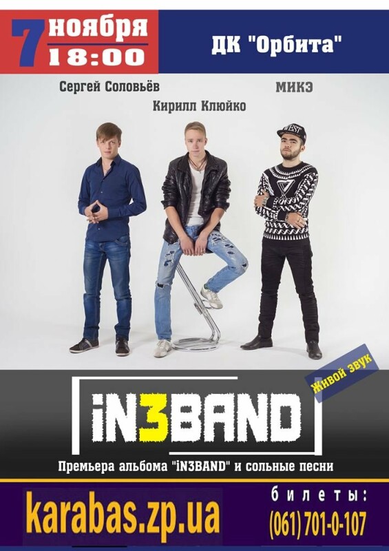 Приглашаем вас на большой концерт нового проекта "iN3BAND". Вас ждёт много новых песен и премьера альбома "iN3BAND", а также сольные номера молодых талантов.