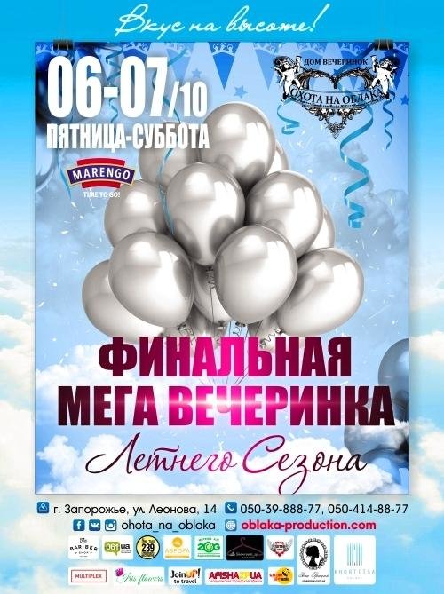 Уже в этот уикенд 6 -7 октября - Грандиозное закрытие летнего сезона Дома Вечеринок "Охота на Облака"!!!