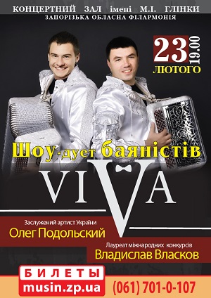 В репертуаре дуэта: композиции разных стилистических направлений и эпох. Запорожскую публику артисты порадуют профессиональным исполнением известных инструментальных композиций: "Чардаш» В. Монти, Самба "Тико-Тико", "Либер-танго" А. П 'яццоллы, поппури на темы 80-х и многие другие.