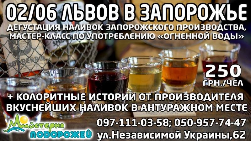 2 июня туристическая компания "Майстерня подорожей" приглашает на эксклюзивный тур - дегустацию вкуснейших наливок Запорожского производства, приготовленных по старинной рецептуре.