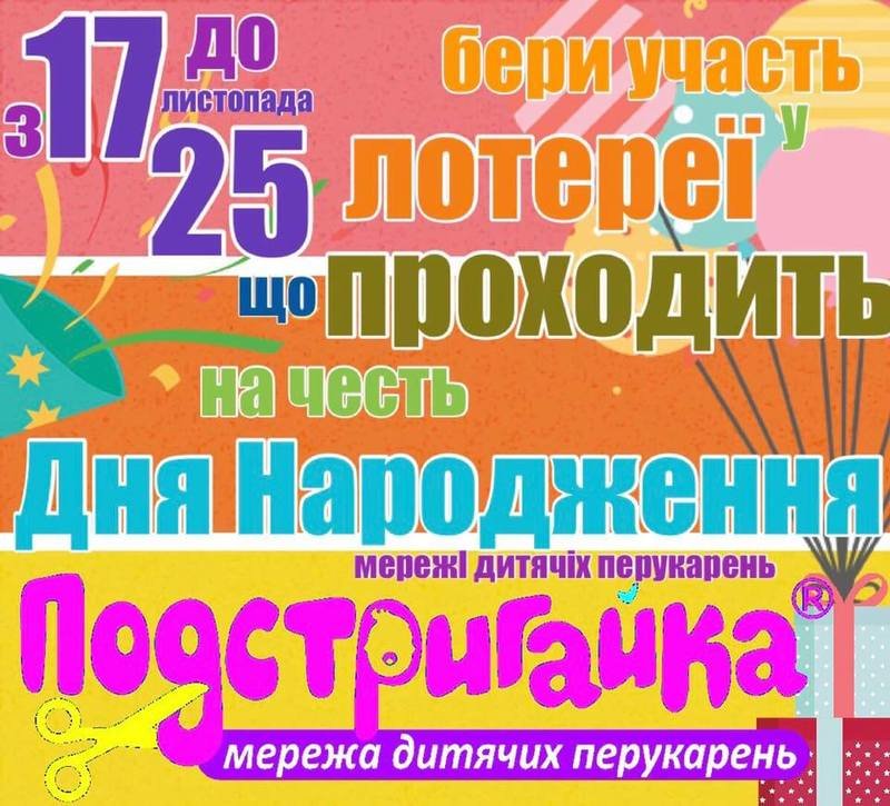 У всiх перукарнях мережi «Подстригайка» буде проходити лотерея до нашего дня народження!