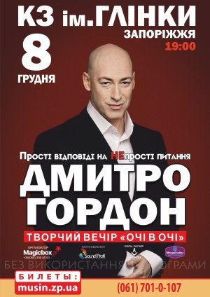 Вперше у Запоріжжі відбудеться творчий вечір Дмитра Гордона – відомого журналіста, телеведучого та засновника інтернет-видання «ГОРДОН».