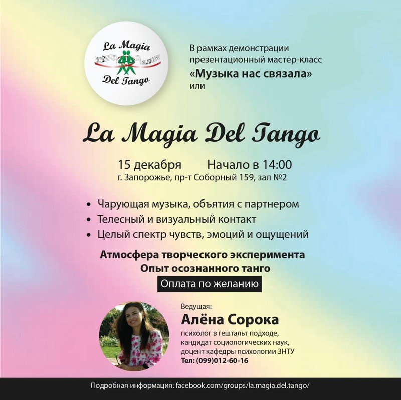 Мы будем учиться контакту, ведению и следованию в танго и в отношениях.