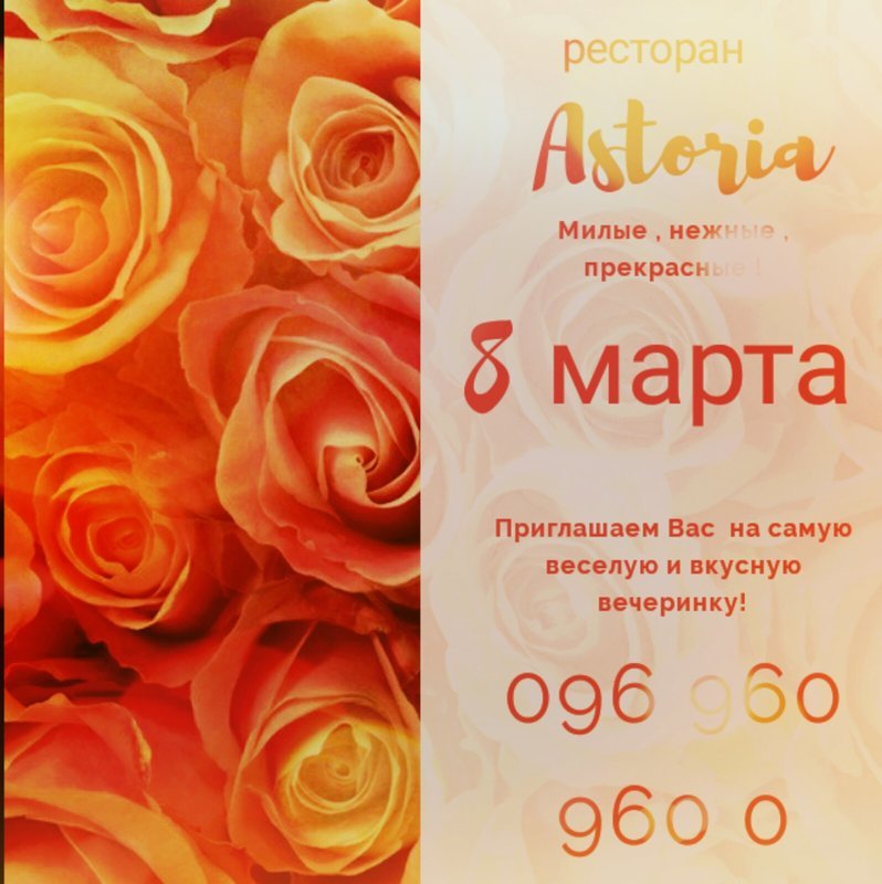 Ресторан "Astoria" приглашает отпраздновать 8 МАРТА