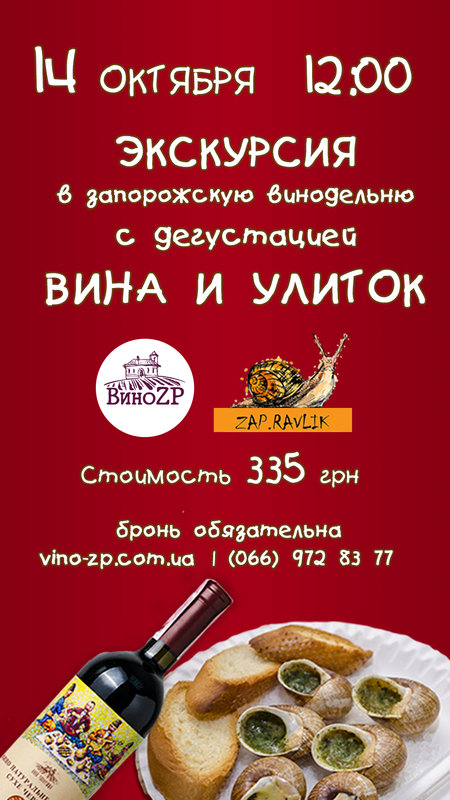 Регистрация обязательна!https://vino-zp.com.ua/ekskursii За дополнительной информацией обращаться по телефону