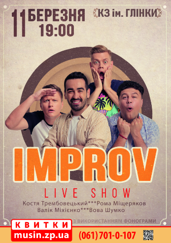 IMPROV LIVE SHOW создан актерами, которые отточили мастерство на известных телевизионных проектах: "Утро", "Лига Смеха", "Рассмеши комика", "Женский Квартал".
