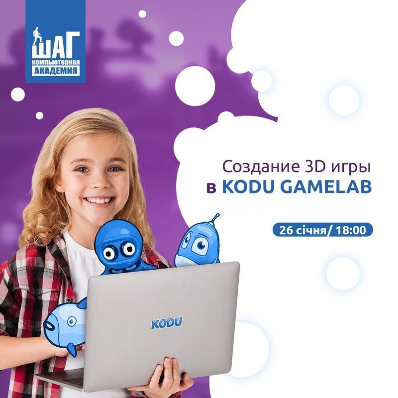 26 января в 18:00 приглашаем родителей и детей возрастом 9-14 лет на бесплатный открытый урок «Создание 3D игры в KODU Game Lab»!