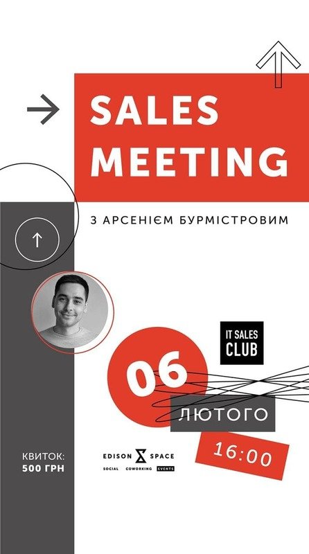 Sales Meeting з ментором Арсенієм Бурмістровим, де у вигляді панельної дискусії розглянемо реальні кейси в роботі, дізнаємося про вже існуючі рівні комунікації та факапи в роботі з клієнтами.