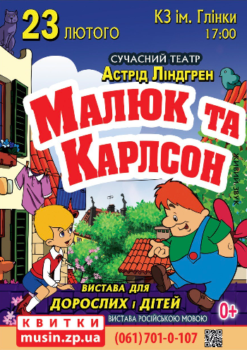 Театр випустив пустотливу, барвисту, трохи хуліганську, але дуже добру виставу. Вистава про дитячі мрії. Адже, по суті, Карлсон - це немов другий Малюк, якому дозволено все, що заборонено Малюкові. Тому і головний герой вистави - просто пустотливе хлопченя, що радіє появі в його житті надзвичайного друга. А сам Карлсон - така ж дитина, тільки доросла. А манірна Фрекен Бок, а друзі-грабіжники Філле і Рулле? Усі вони абсолютно реальні і в той же час - це усе фантазія.