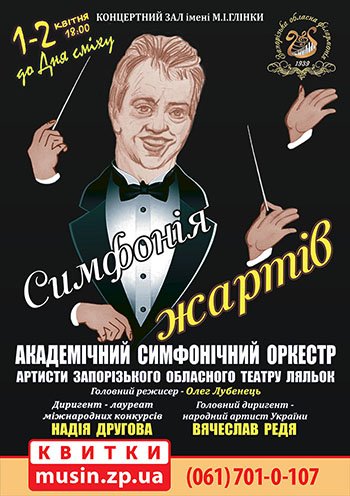 Поэтому, приглашаем всех в концертный зал имени Глинки Запорожской областной филармонии на музыкальный праздник юмора и смеха 1 и 2 апреля в 18.00!