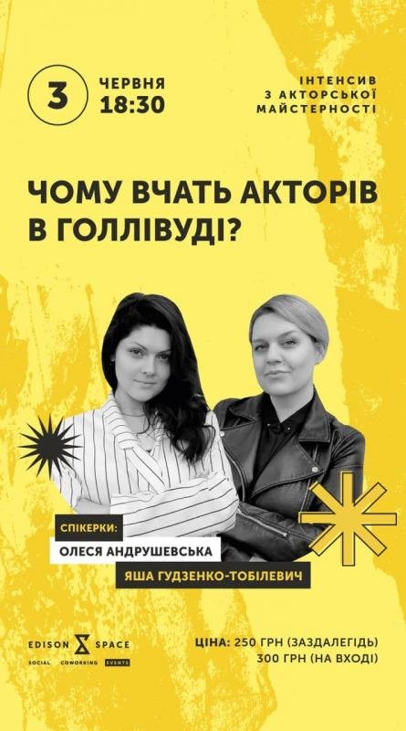 Вже 3 червня ви зможете дізнатися як навчають акторів в Голлівуді та як розкрити свій акторський потенціал у реальному житті