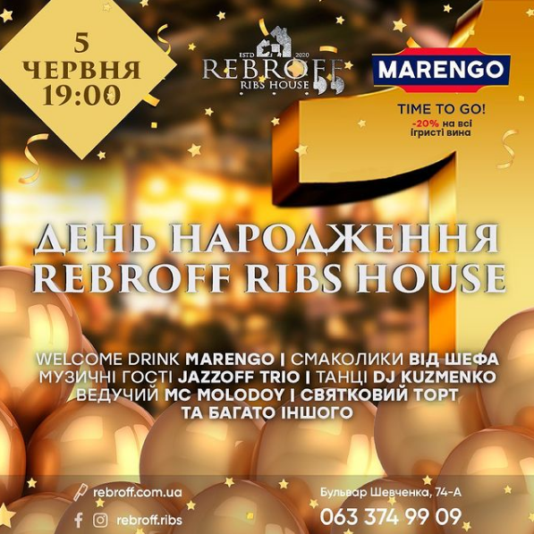 5 черевня о 19:00 наша реберня в Запоріжжі відзначає рік роботи.
