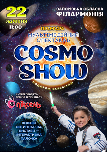 Чи хотіли б побувати на всіх планетах сонячної системи, подолати швидкість світла і поринути в космічне життя? Це реально! Адже для дорослих та дітей ми підготували Космічне мультимедійне шоу за участю ведучих телеканалу «ПІКСЕЛЬ»!