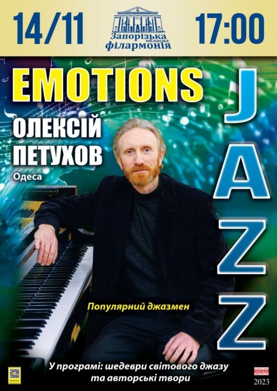 14 листопада у Запорізькій обласній філармонії вперше виступить відомий український джазовий піаніст і композитор Олексій Петухов (Одеса) з новою авторською програмою «Emotions».