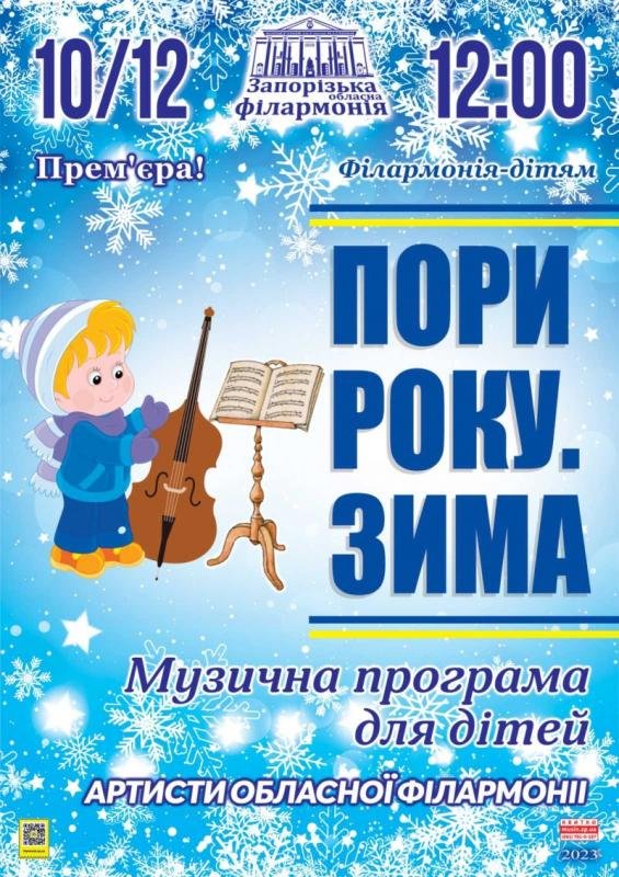 Завітайте до Запорізької обласної філармонії всією родиною 10 грудня 2023 року о 12.00 і ви назавжди закохаєтесь у Музику зими!