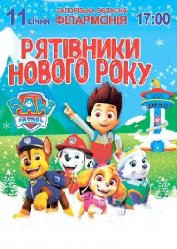 "Щенячий патруль. Рятівники нового року" - це новорічна сімейна вистава для дітей, яка включає інтерактивні ігри, пісні та танці, де головними героями є Райдер та його цуценята, а також великі ляльки.