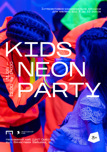 Запрошуємо малечу від 3 до 12 років на інтерактивно-розважальну вечірку з іграми, танцями, виступами творчих колективів, аніматорами, сучасною музикою та неоновим паперовим шоу.