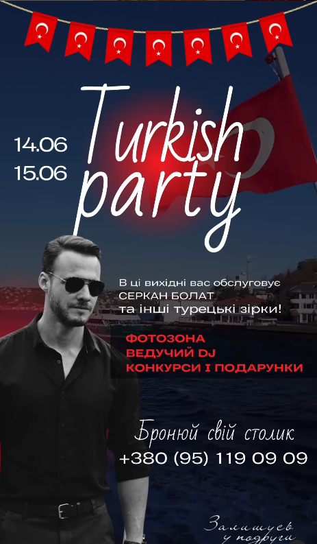 Запрошуємо вас на круту вечірку Турецький серіал, яка відбудеться 14-15 червня.