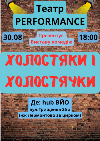 Театр «Performance» та арт платформа «Креативний всесвіт» презентує прем’єру експериментальної комедії «Холостяки і холостячки»