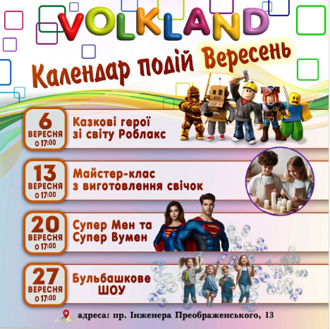 Дитячий центр VOLKLAND - місце для дозвілля, простір для творчих занять, тематичних конкурсів та багато інших розваг для дітей різних вікових категорій.
