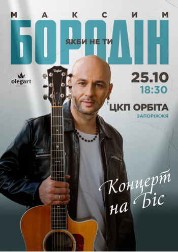 Максим Бородін пройшов шлях від вуличного артиста до популярного співака з багатотисячною аудиторією. На широкий загал Максим став відомим завдяки участі у шоу «Голосу країни-12». Серед найвідоміших пісень артиста – романтичний хіт року «Якби не ти», який розкриває всю важливість та силу справжніх почуттів.Цього вечора Максим Бородін у супроводі музикантів виконає свої найкращі композиції «Якби не ти», Чайка», «Скажи мені», «Моя країна», а також авторські версії популярних українських пісень.