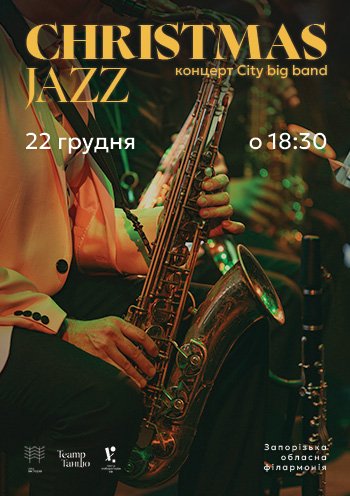 Джазовий оркестр Запоріжжя «City big band» підготував нову програму спеціально до зимових свят. Незмінний голос вистав «Дому актора» Михайло Герасимчук разом з чарівною напарницею виконають наживо головні хіти. Запальні танцівники Театру танцю теж не залишаться осторонь джазового вечора.