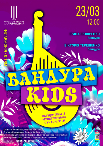 23 березня в рамках мистецького проєкту «Філармонія - дітям» запрошуємо дітей та їх батьків на яскраву супер прем’єру «Бандура Kids», яка відкриває двері в дивовижний світ бандурного мистецтва!