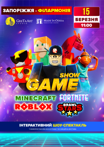 Вирушайте у світ, де ігри оживають! Gamer Show – це унікальне інтерактивне шоу від GreTaArt Production та Made in Odessa, що об’єднує культові світи Minecraft, Brawl Stars, Roblox, Fortnite. На кону – порятунок Геймерленду та Майстра Геймера, а головні герої – це ви, глядачі!