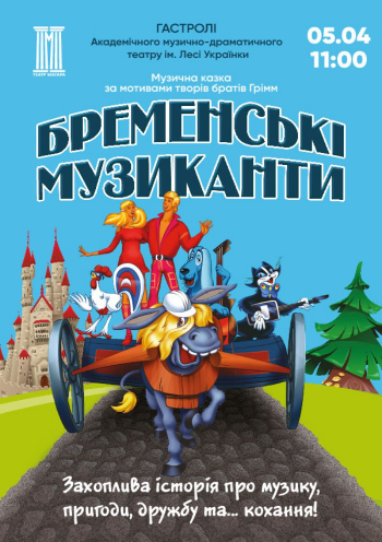 Пані та панове! Відомі на увесь світ артисти – Трубадур та його друзі Осел, Кіт, Пес і Півень – зіграють для вас веселу історію з неймовірними пригодами про те, як Принцеса, незважаючи на заборону татуся Короля та на підступи лихих лісових розбійників, боролася за щастя із коханим. І не тільки зіграють, а ще і заспівають, і станцюють. Тільки в нашому театрі! І тільки для вас!