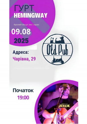 Запрошуємо всіх, хто має гарний музичний смак, а також тих, у кого його немає, але він так думає, на неймовірно потужну рокову подію - великий концерт гурту "Hemingway"!