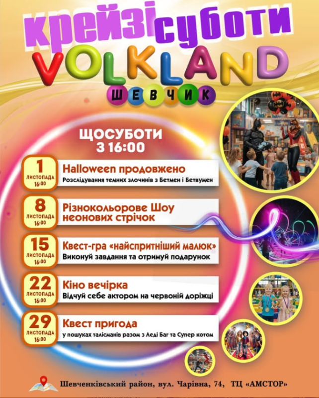 Приходь у суботу та безкоштовно бери участь у наших крутезних іграх та шоу, враження - НЕЗАБУТНІ!
