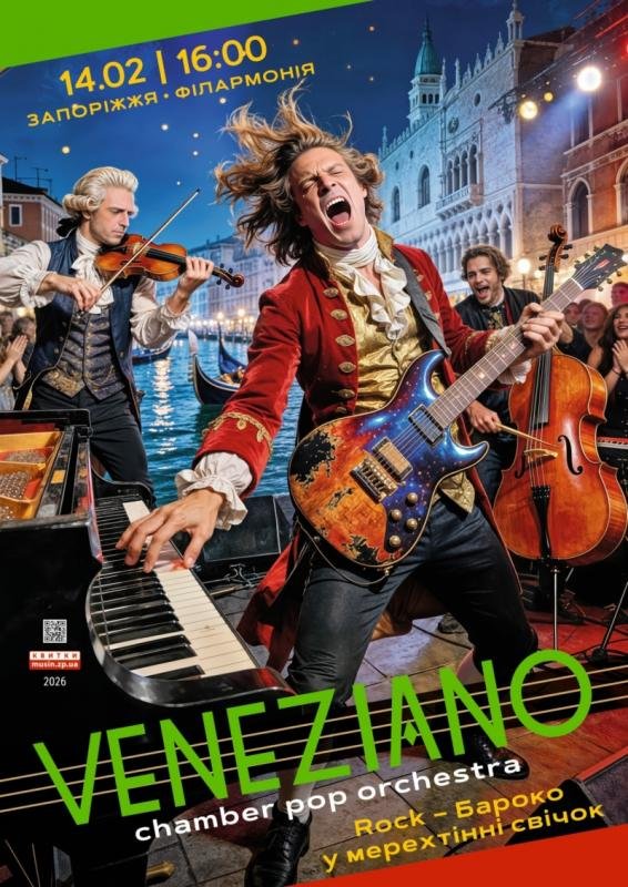 14 лютого Chamber Pop Orchestra презентує програму «Veneziano», у якій композиції італійського композитора Джан П’єро Ревербері постануть у яскравих інструментальних барвах — від «Odissea» та «Colombina» до «La Serenissima» й «San Marco».