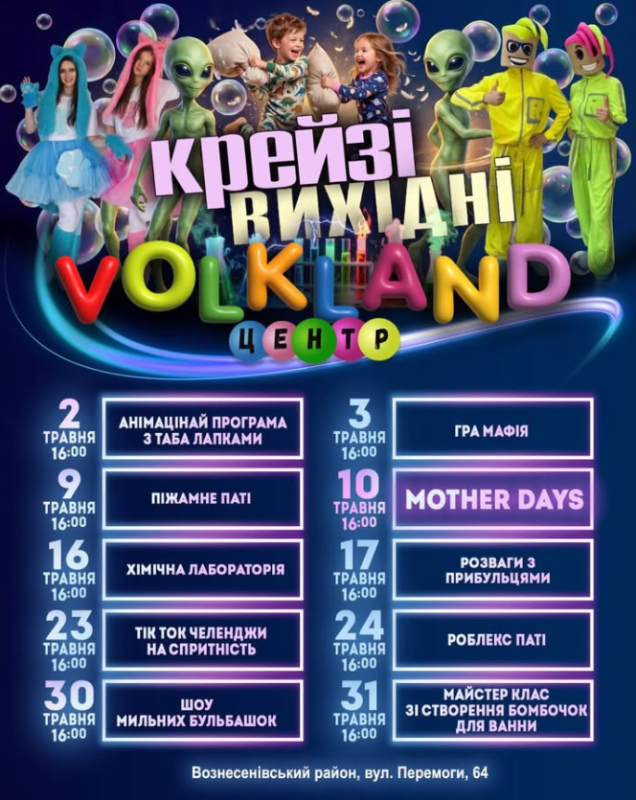Веселі програми, ігри, конкурси, сюрпризи та атмосфера справжнього свята чекають на вас. Не пропустіть найвеселіші вихідні!