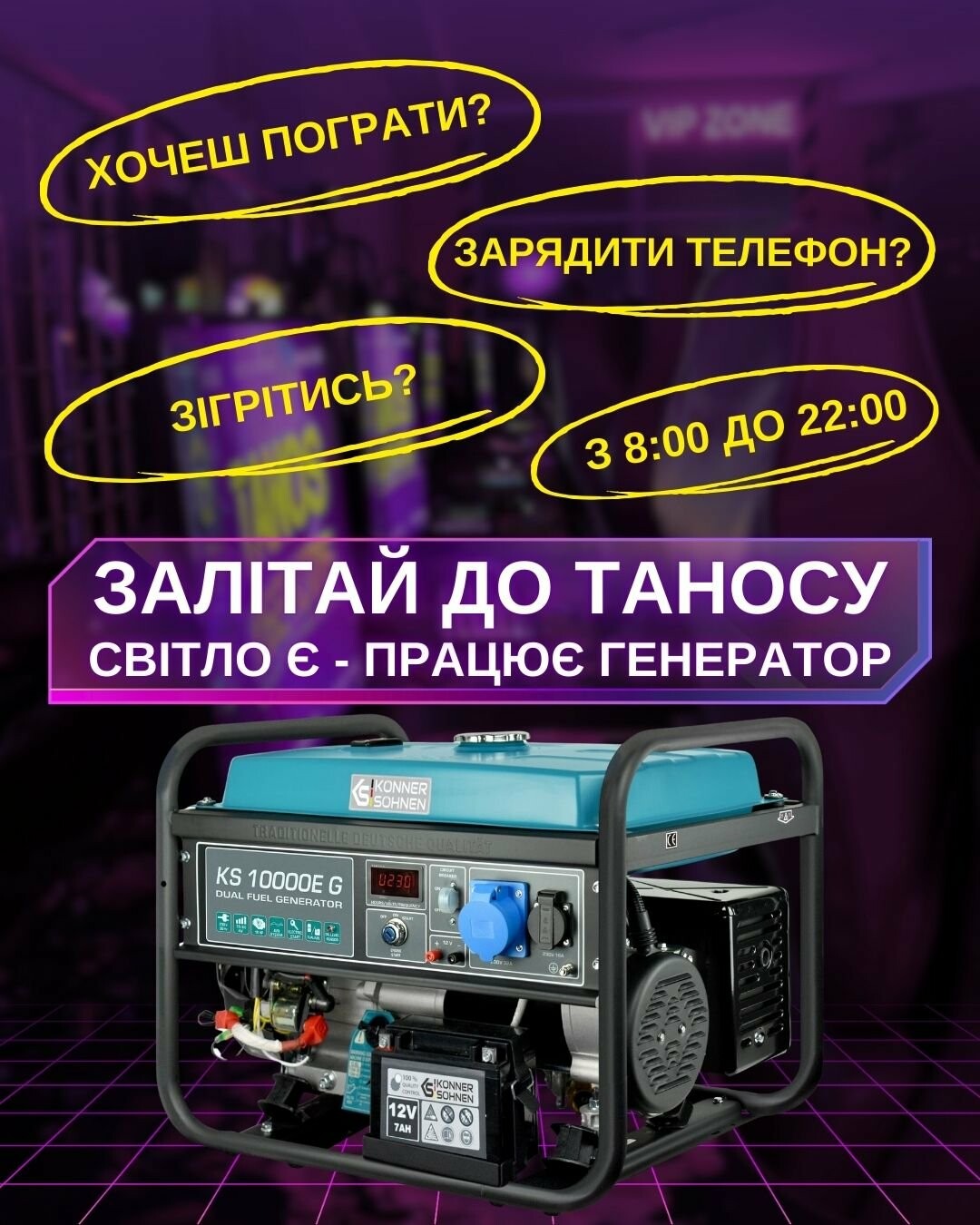 МИ НАГАДУЄМО! У разі вимкнення світла, в кіберклубі Танос працює ГЕНЕРАТОР