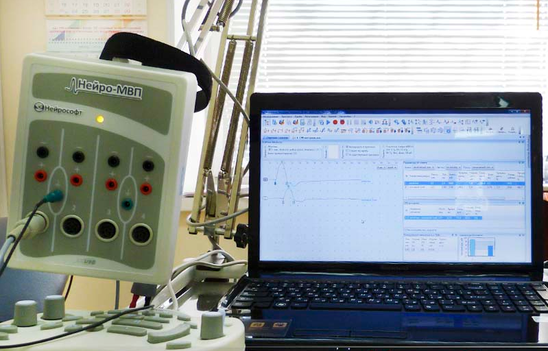 - реєстрацію та аналіз параметрів викликаних потенціалів (ВП) м'яза та нерва (латентний період, форма, амплітуда та тривалість ВП);