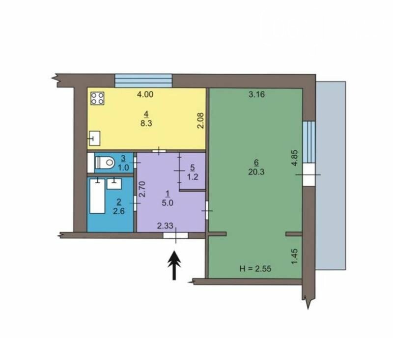Метраж: загальна 40,26 / житлова 20,3 / кухня 8,3.