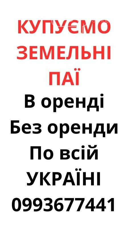 Купуємо ЗЕМЕЛЬНІ ПАЇ по всій Україні!!! - Найкраща ціна по ринку - В оренді - Без оренди - Наше оформлення - Юридичний супровід Для консультації з приводу продажу вашого паю дзвоніть за номером або пишіть у вайбер.