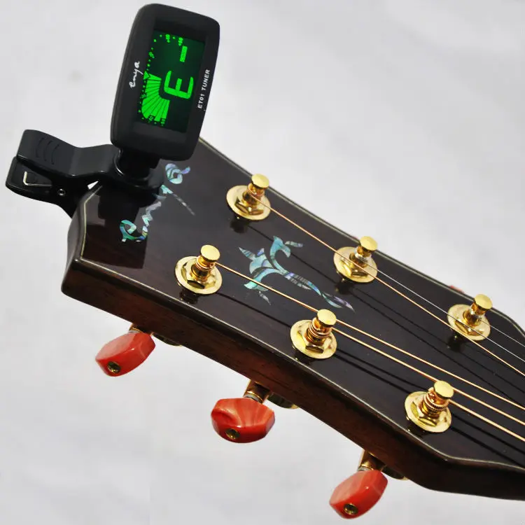 Другой популярный тюнер выполнен в виде прищепки и имеет экранчик. Цепляется этот миниатюрный девайс прямо на голову грифа. зачем он оснащен дисплеем? Чтобы при помощи световых индикаторов показывать, правильно ли произведена настройка струны.