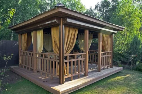 - широкий цветовой диапазон, позволяющий подобрать шторы исходя из личных предпочтений и особенностей дизайна ландшафта, строения и беседки;
