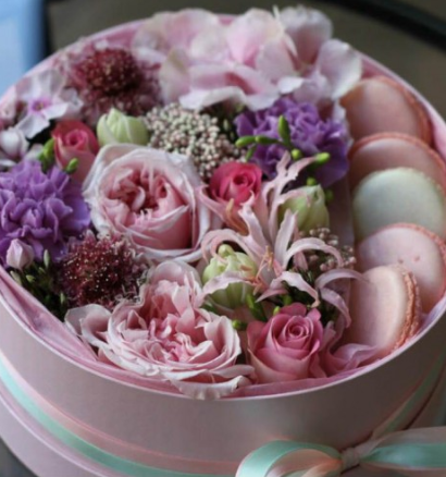 - цветы в декоративной коробке, станет прекрасным цветочным подарком на день рождения юной леди.