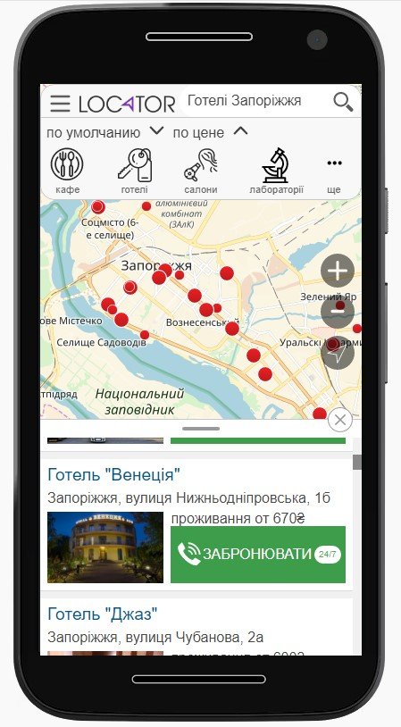 - если вас интересуют услуги, но где их получить вы не знаете, выберете подходящие варианты из предложенного «меню» - Locator.ua определит ваше местоположение и покажет самые ближайшие компании, которые оказывают необходимый вам сервис.