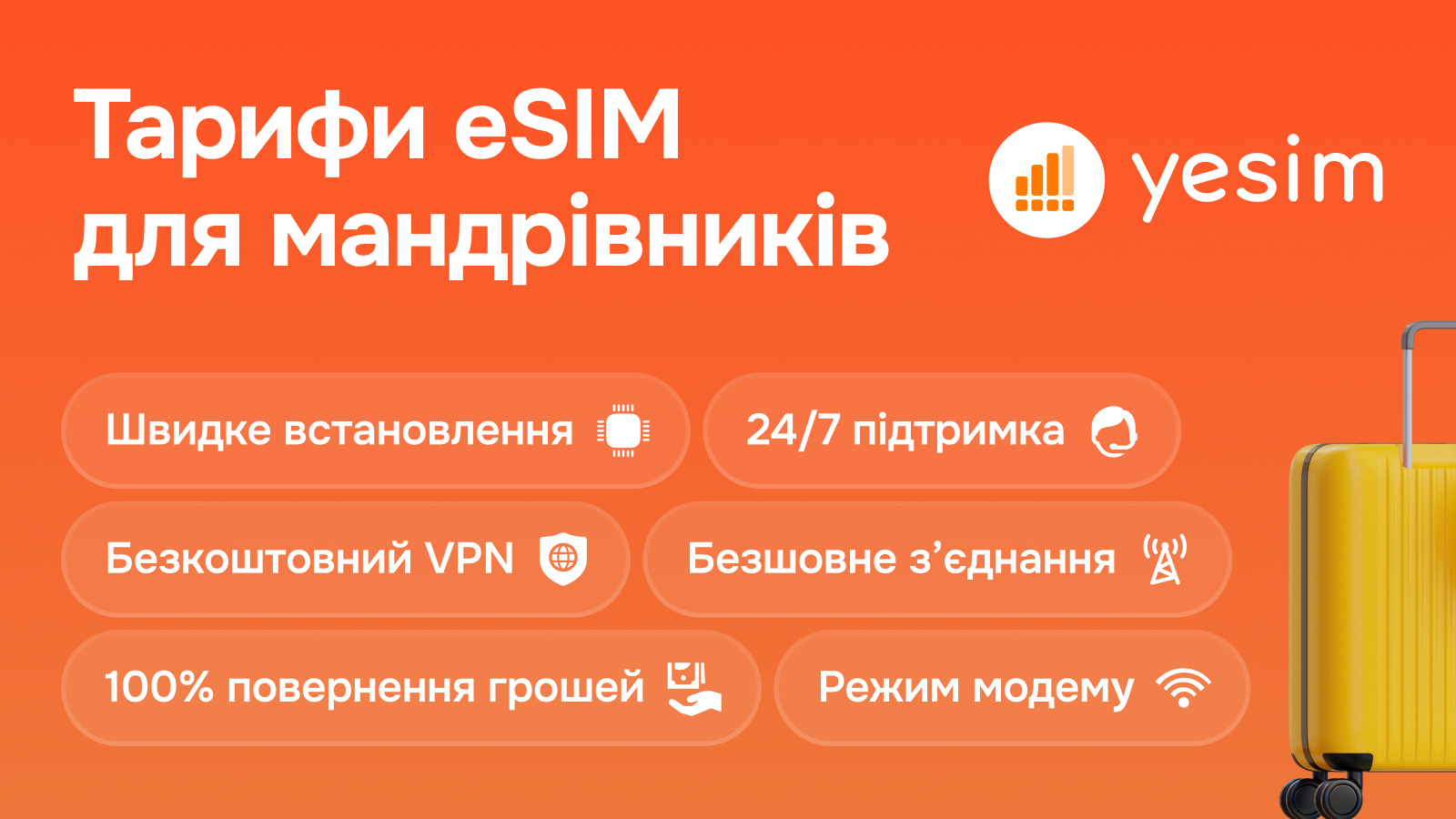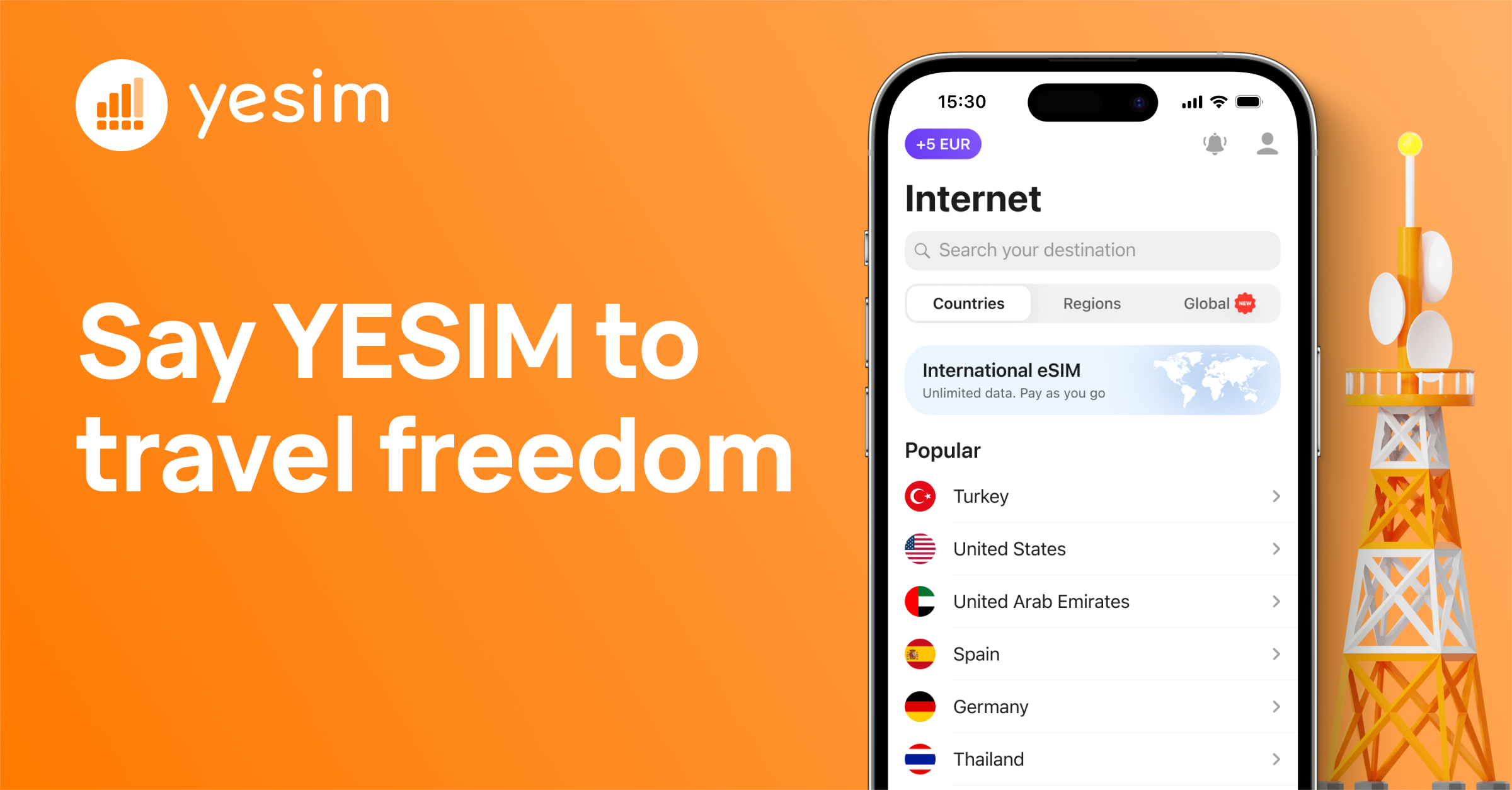 - Пам'ятайте про інтернет за кордоном без будь-яких передплат. eSIM від компанії Yesim є прекрасним рішенням, яке нарешті подарує вам можливість насолоджуватися якісним мобільним зв'язком за лояльними тарифами навіть за кордоном.